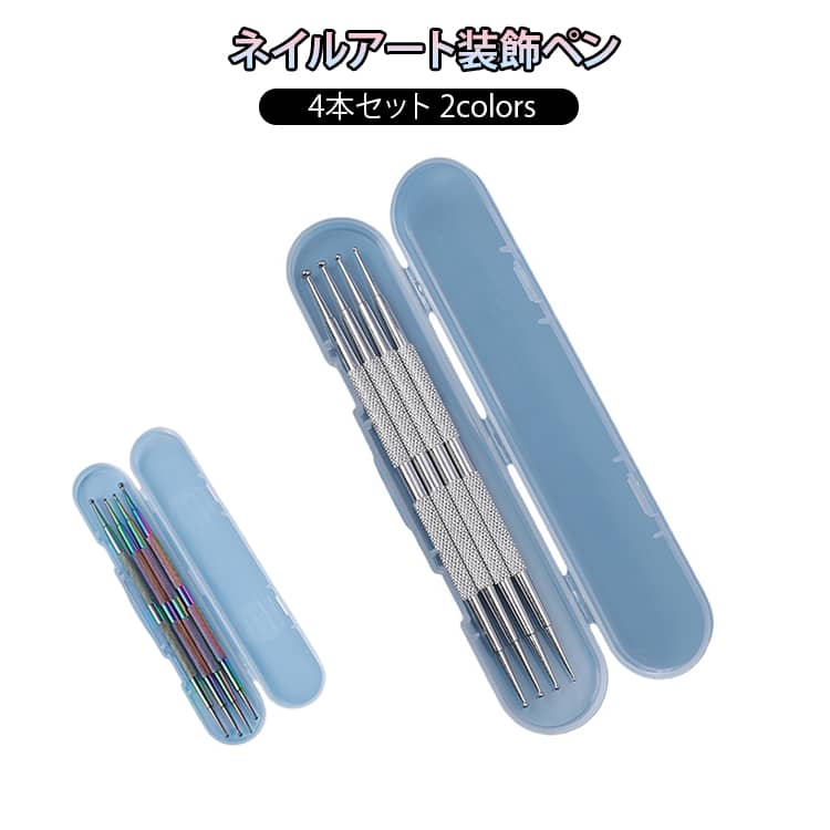 ドットペン ネイル ネイルアートペン 4本セット 2colors ドット棒 ネイル用品 ステンレス…