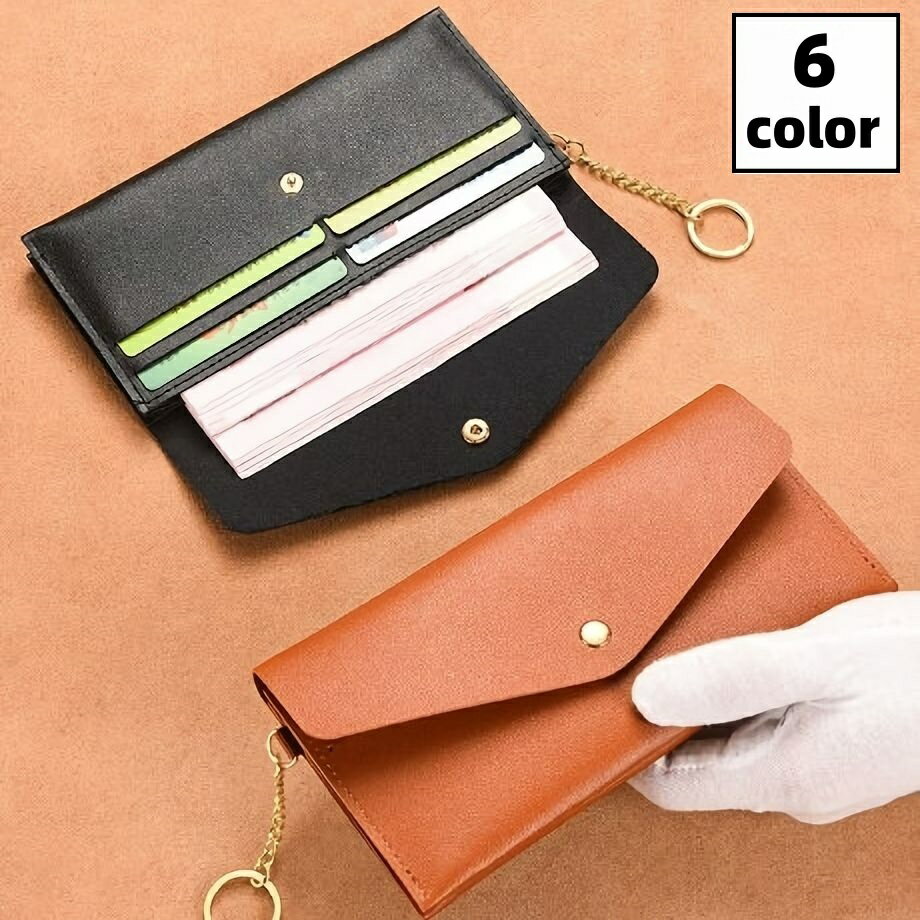 送料無料 長財布 レディース メンズ 財布 ウォレット レザー風 キーリング付き ポーチ 小銭入れ…