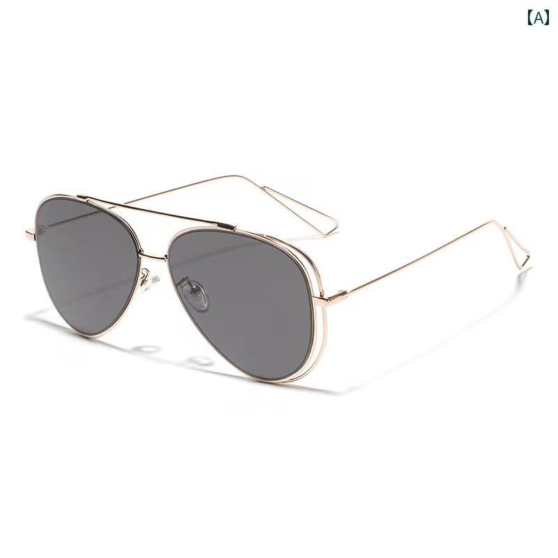 レディース サングラス おしゃれ アメリカン 大型 フレーム ダブルビーム プログレッシブ カラー…