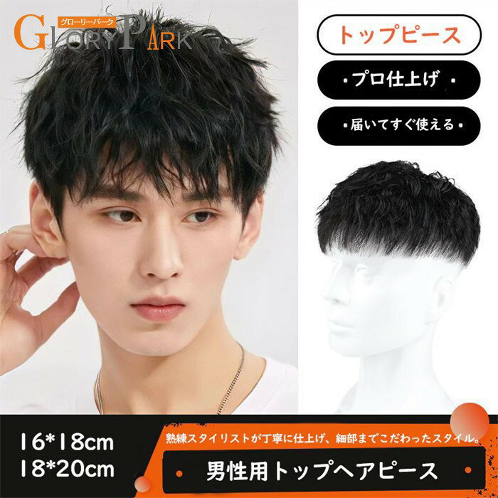 トップピース ウィッグ メンズ 短髪 巻き毛 自然 人毛 かつら 男性用 おしゃれ 耐熱ウィッグ …