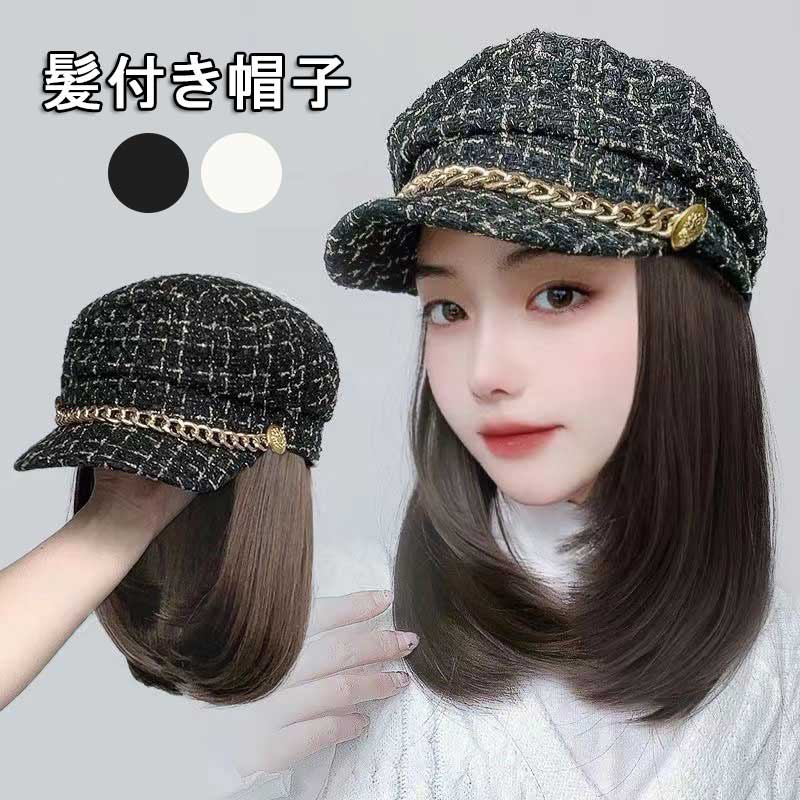 送料無料 帽子一体型 送料無料 髪付き帽子 ウィッグ付きキャップ 冬 小顔効果 ウィッグ付き帽子 …