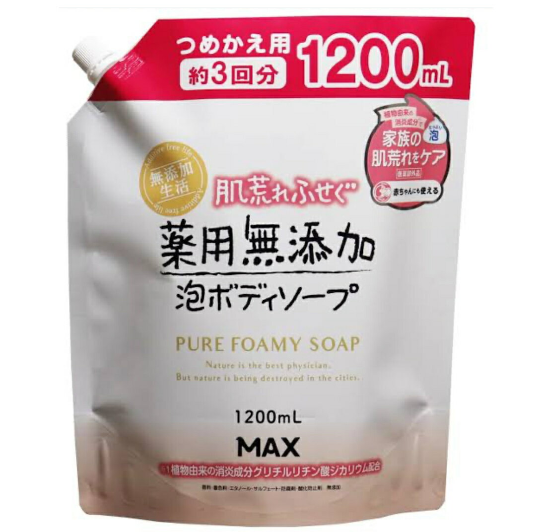 肌荒れふせぐ薬用無添加泡ボディソープ 無添加生活 詰替 1200ml 詰替え用ボディソープ ボデ…