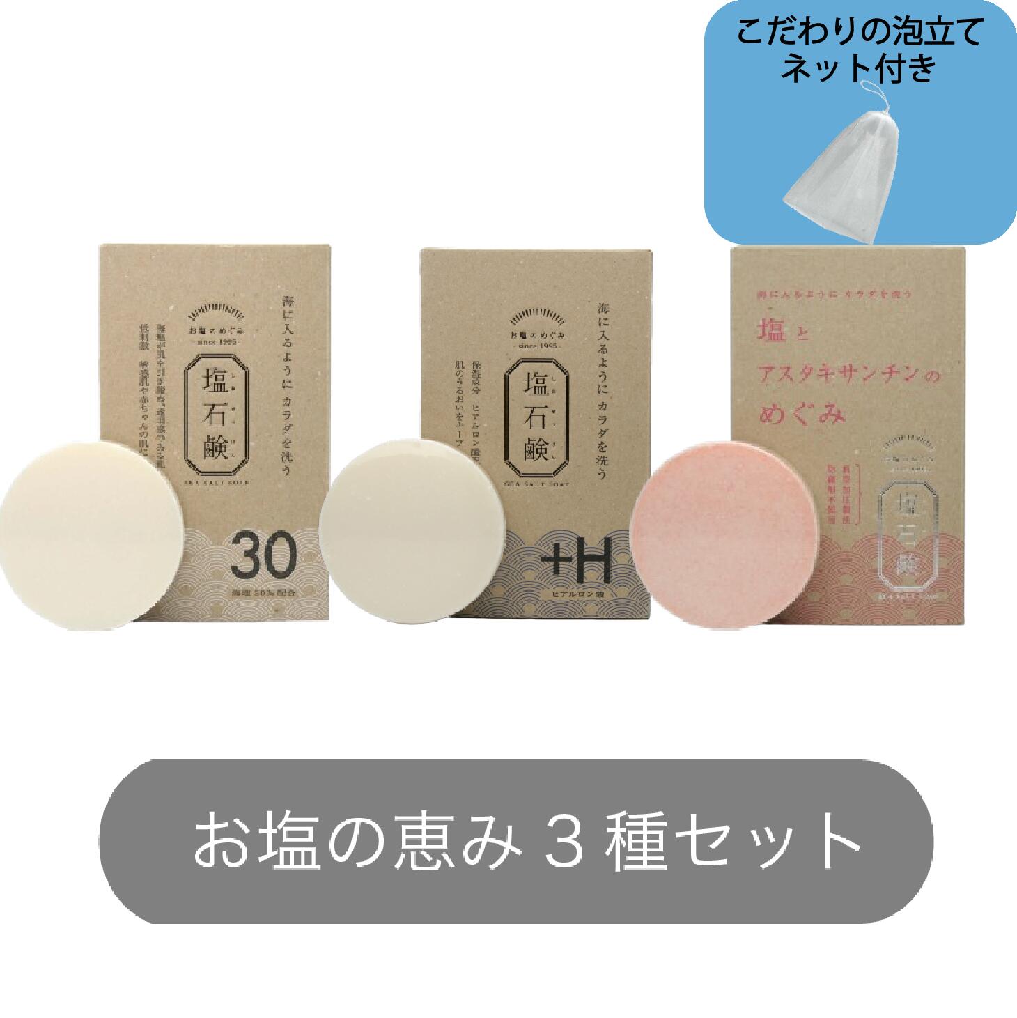[お塩の恵み3種セット]洗顔石鹸 無添加 メンズ 洗顔石鹸 男性 パラシュート型泡立てネット付 オ…