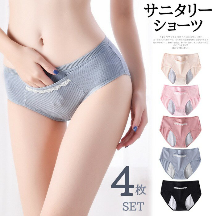 サニタリー ショーツ 4枚セット ポケット付きパンツ パンツ 綿 インナー かわいい 下着 生理用…