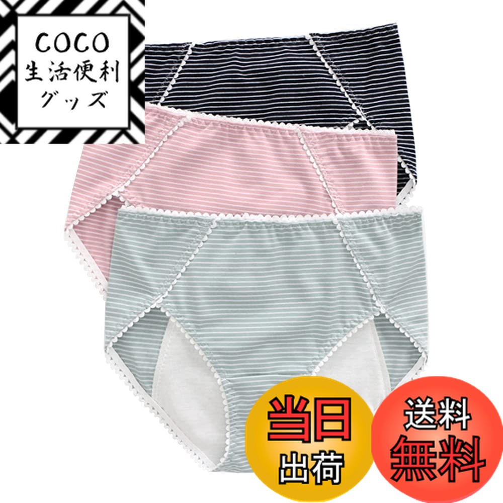 3枚セット 抗菌 綿 コットン サニタリーショーツ 生理用ショーツ 吸水 漏れ防止 クロッチ防水 …